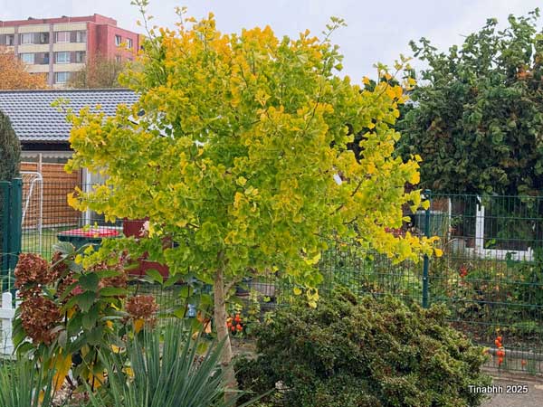 So langsam setzt die Herbstfärbung am Ginkgobaum ein.