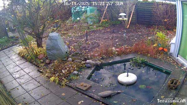 Wintervorbereitung am Gartenteich. Pumpe raus, Filter gereinigt und den Eisfreihalter unter das Netz platziert.