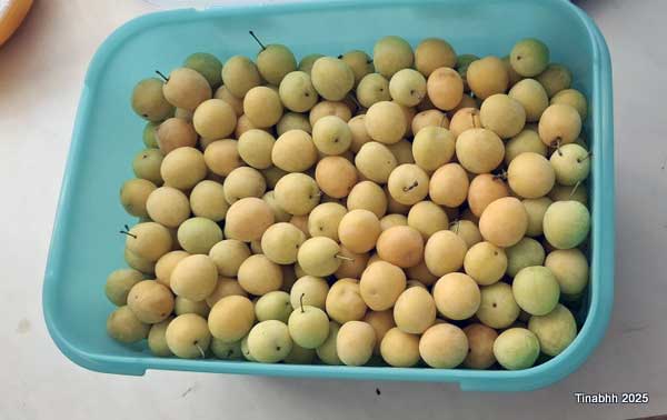 Die Mirabellenernte von 3 jungen selbstgezogenen Bäumchen. Die Beschenkte hat sich gleich ans Marmeladenkochen gemacht.