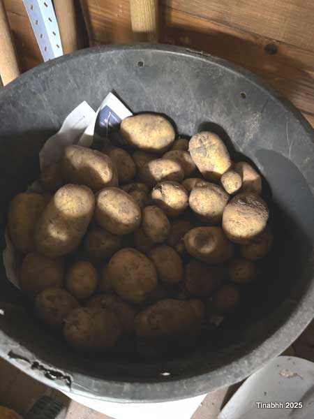 2 große Bottiche voller Linda Kartoffeln. Die Ernte war gut.